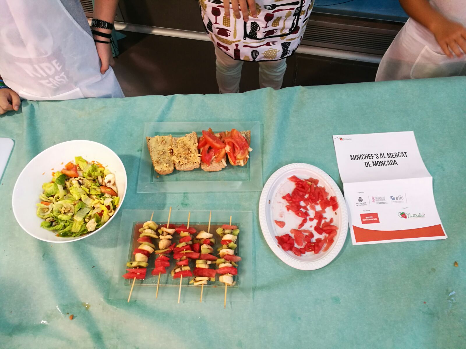 «Lo que más me ha gustado ha sido el hummus de pimiento», «Lo hemos llamado Les torrades de la Nutricionista«, «Esta noche haré las recetas en casa, «Me lo ha pasado muy bien», «Me han gustado las barquitas de verduras». Estas son algunas de las frases que resumen los talleres de Minichef’s al Mercat de Moncada